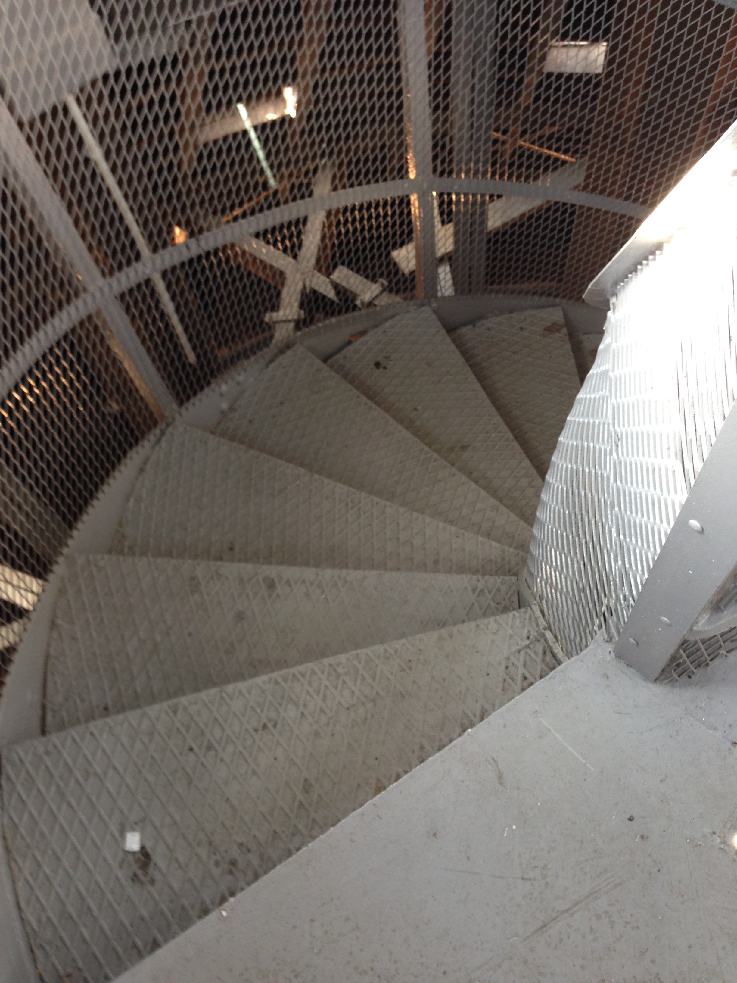 I’m OK in tall buildings looking out from the inside. Even OK in airplanes and looking down thousands of feet from inside the safety of the plane….but get me out on a ledge where there is a gap in the railing and the “floor” is a metal grate and this unrational fear takes over. But I did manage to take some pictures while I was glued to the side of the water tower.