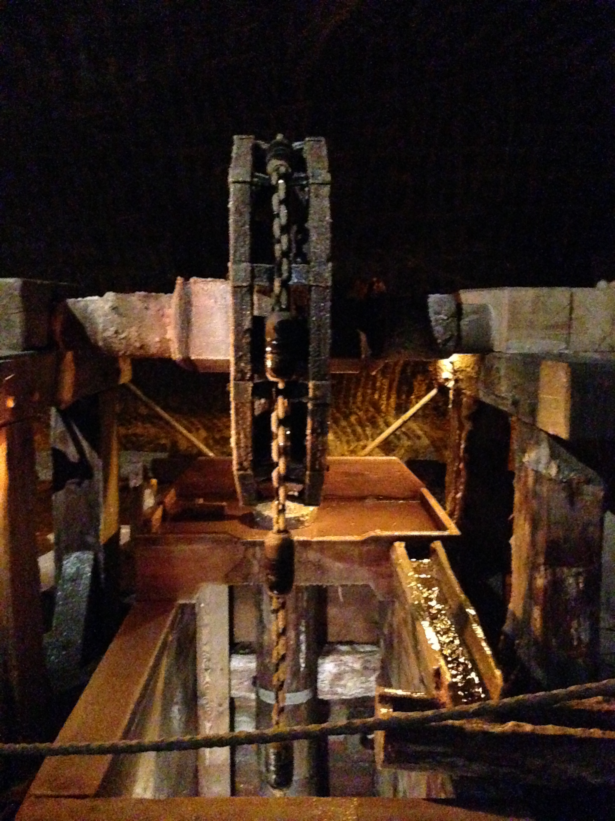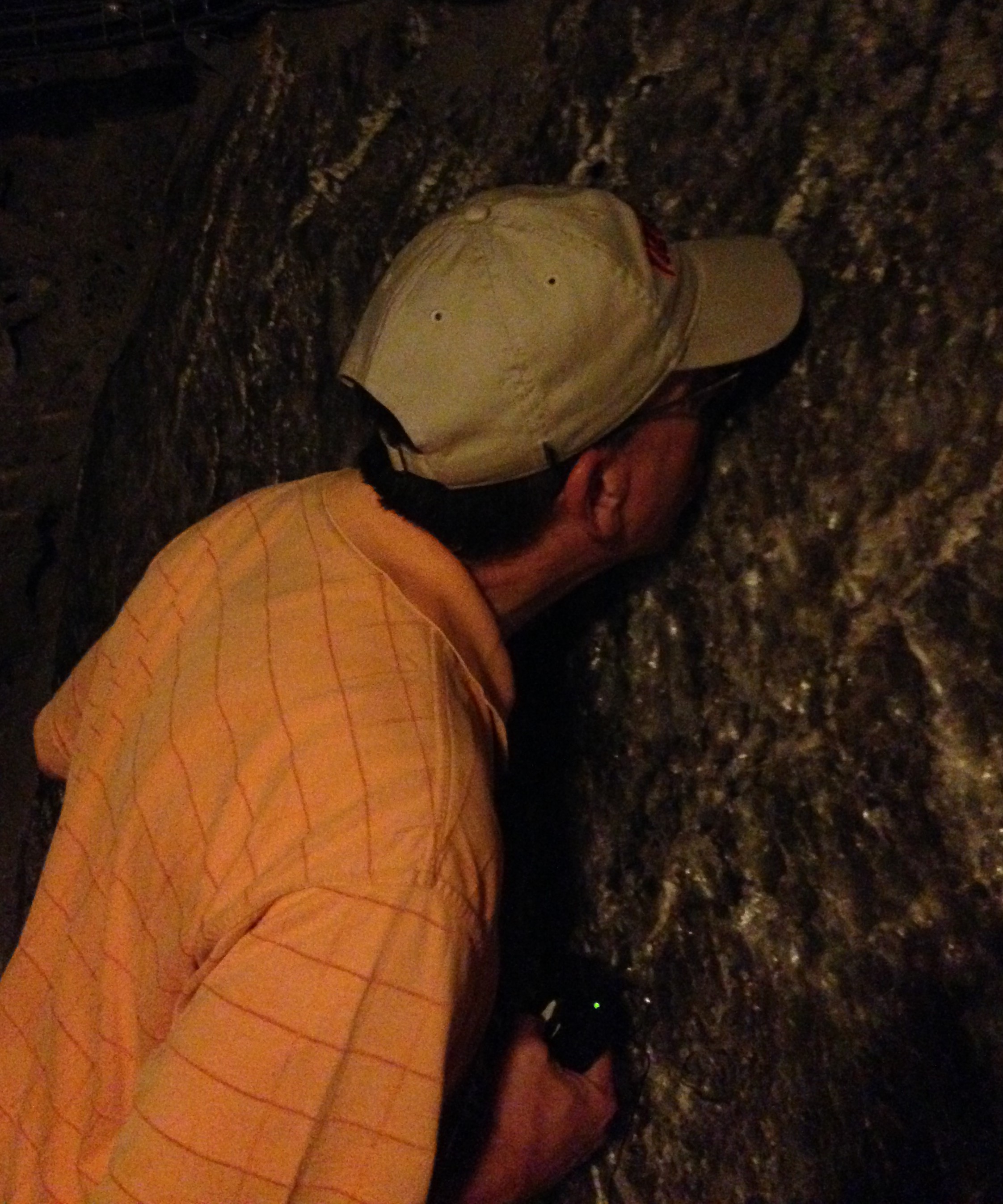 The first part of the tour (once you’ve gotten your tickets and stood in the “English” tour line) is to descend into the mine….by stairs….wooden stairs….wooden stairs that wind down a shaft….260 stairs to be exact. (It was a physical therapy workout!). Once you were down those steps….you entered into a mine full of passageways and tunnels that lead you deeper down into the mine (and yes, there are more stairs…178 more!). The tour is a 1.9 mile journey….but you only see 2% of the mine! So you can imagine how HUGE this mine is. David is excited about this!