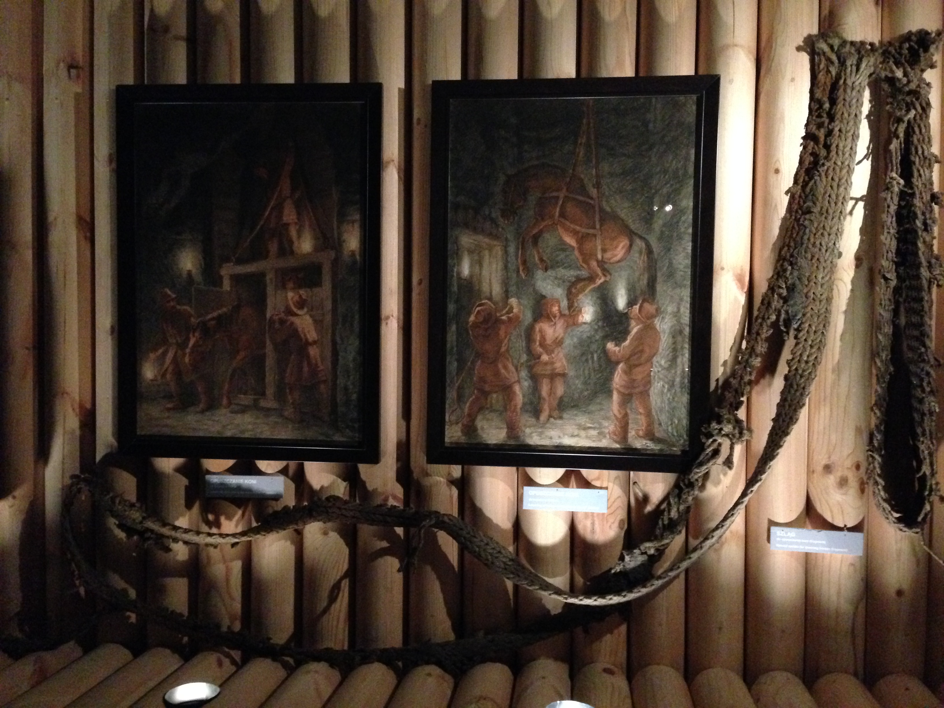 All along the way are examples of how the salt was mined over the years. Horses and mules were used and lived in the mines and were lowered into the mine on the special harnesses.