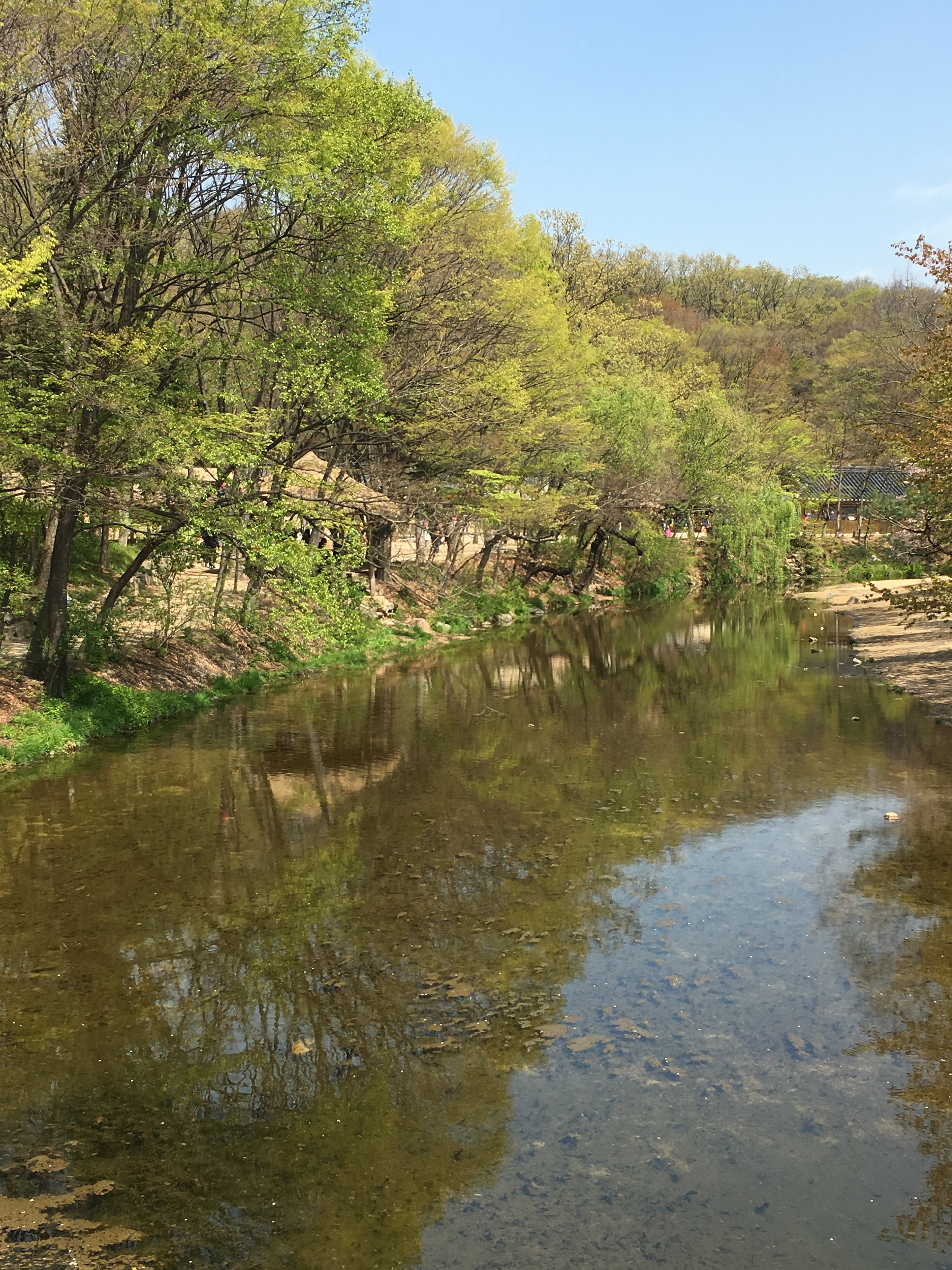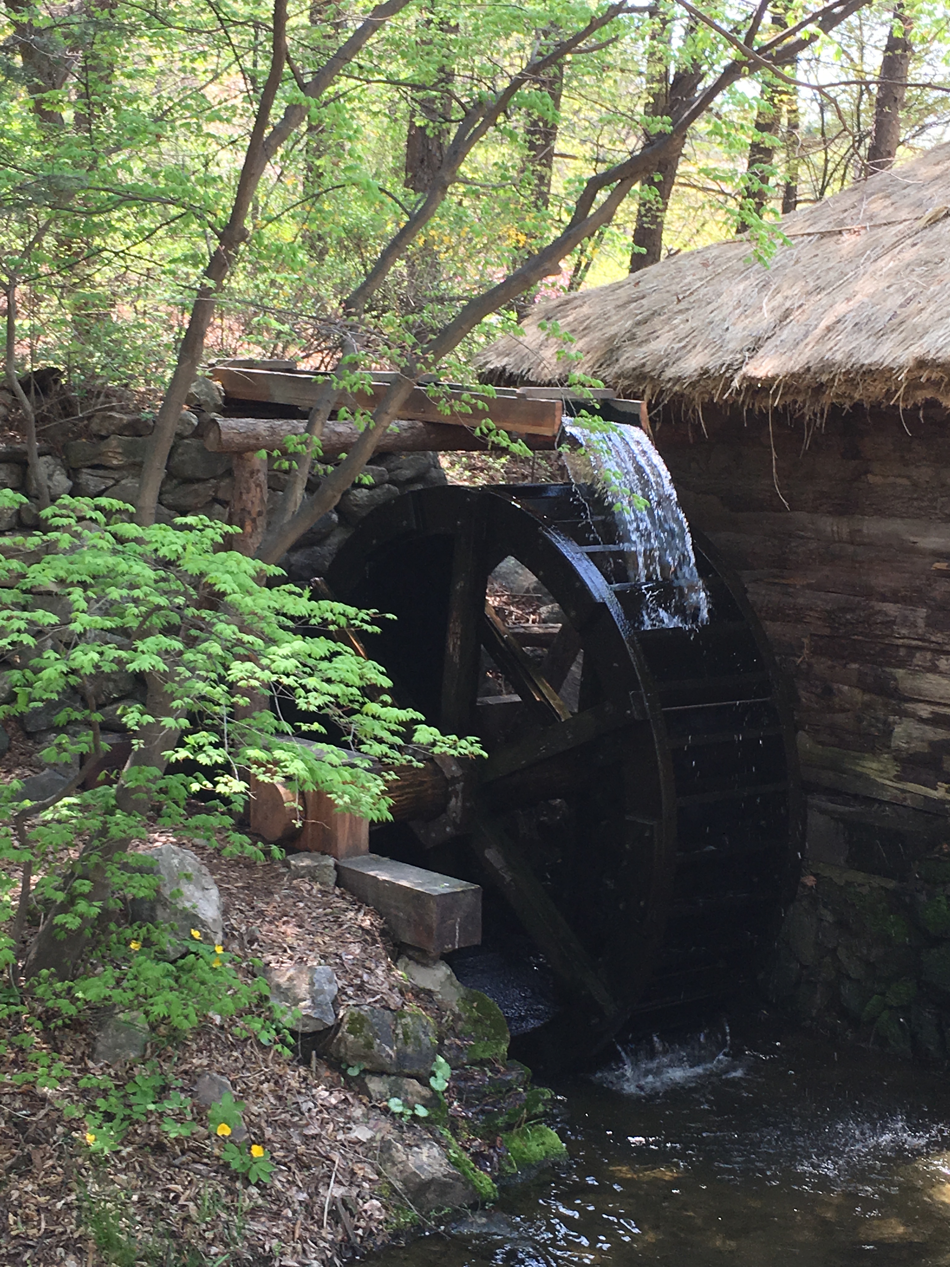 Welcome back! I’m still at the Korean Folk Village (at least in this post). I left you eating lunch…so are you ready for the rest of the afternoon? If you remember this living history village covers about 25 acres, so it shouldn’t be a surprise that there is a lot of open space and well…nature. Continueing on through the village, we walked past this waterfall.