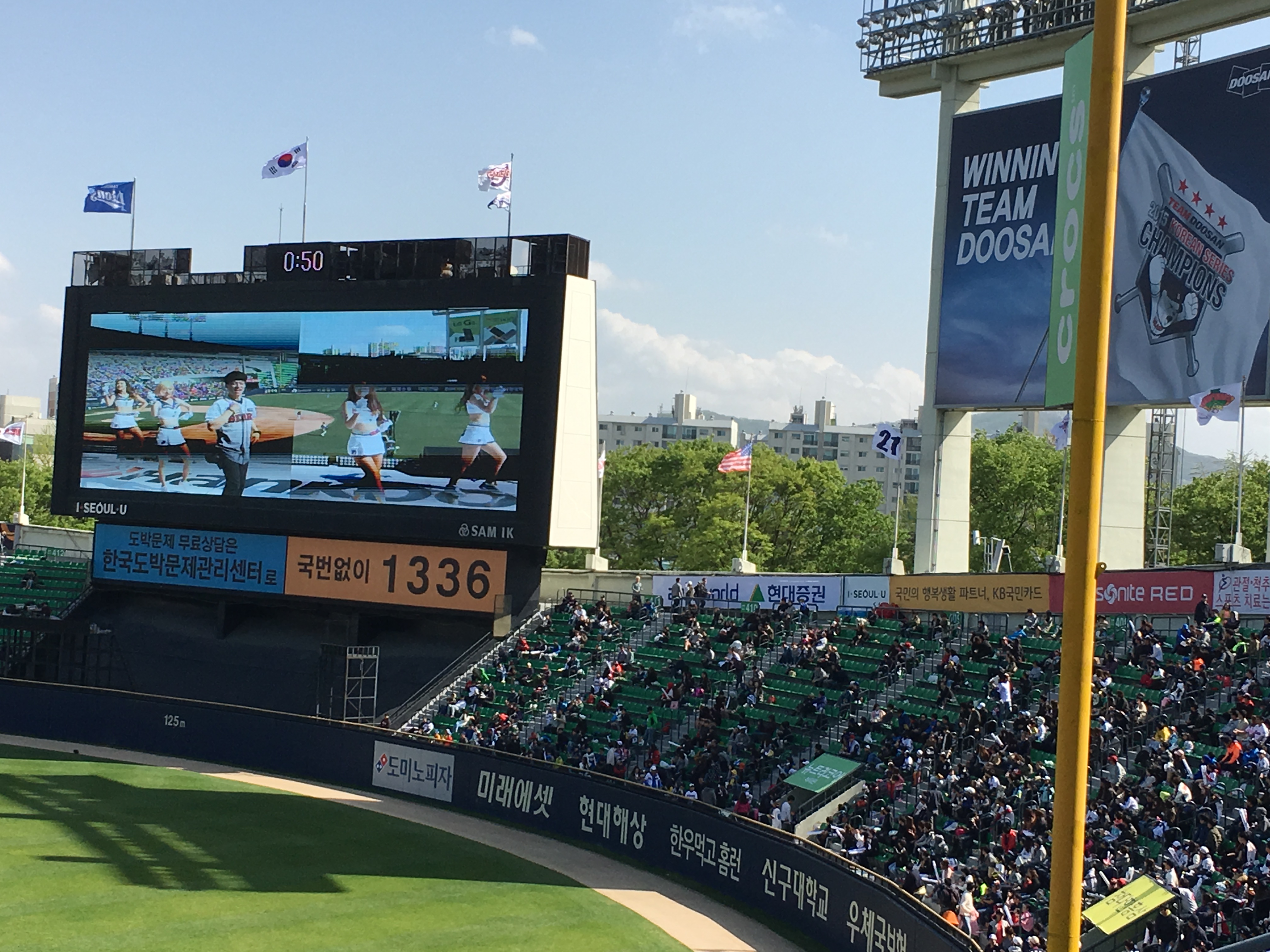 The game was between the Doosan Bears, one of three teams in Seoul and the Samsung Lions from the city of Daegu.