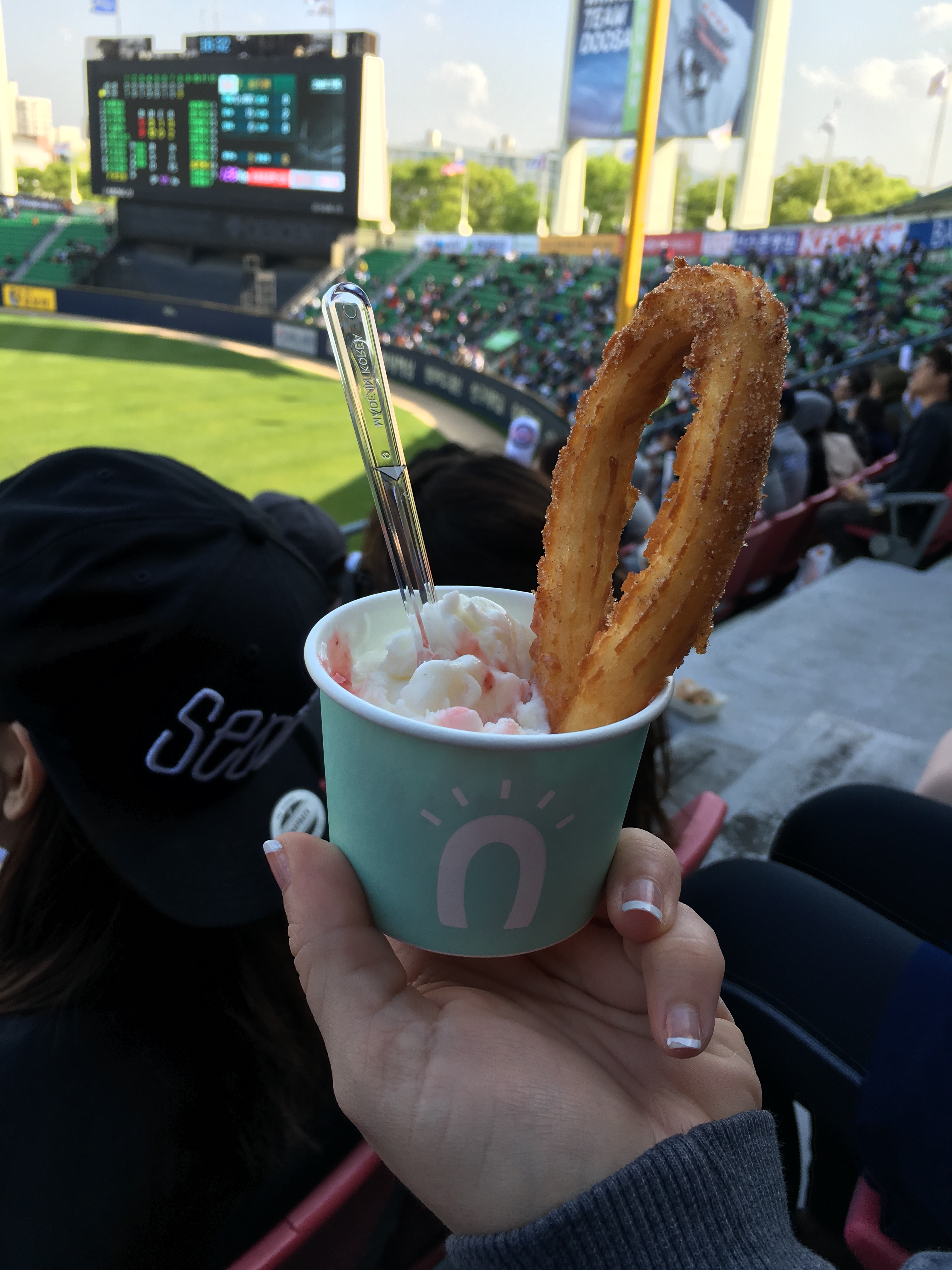 Even though we did bring in way too much food to eat when we came…we did take the time to have a little dessert. A Churro with vanilla ice cream with strawberry topping….so very Korean (haha). it was yummy!