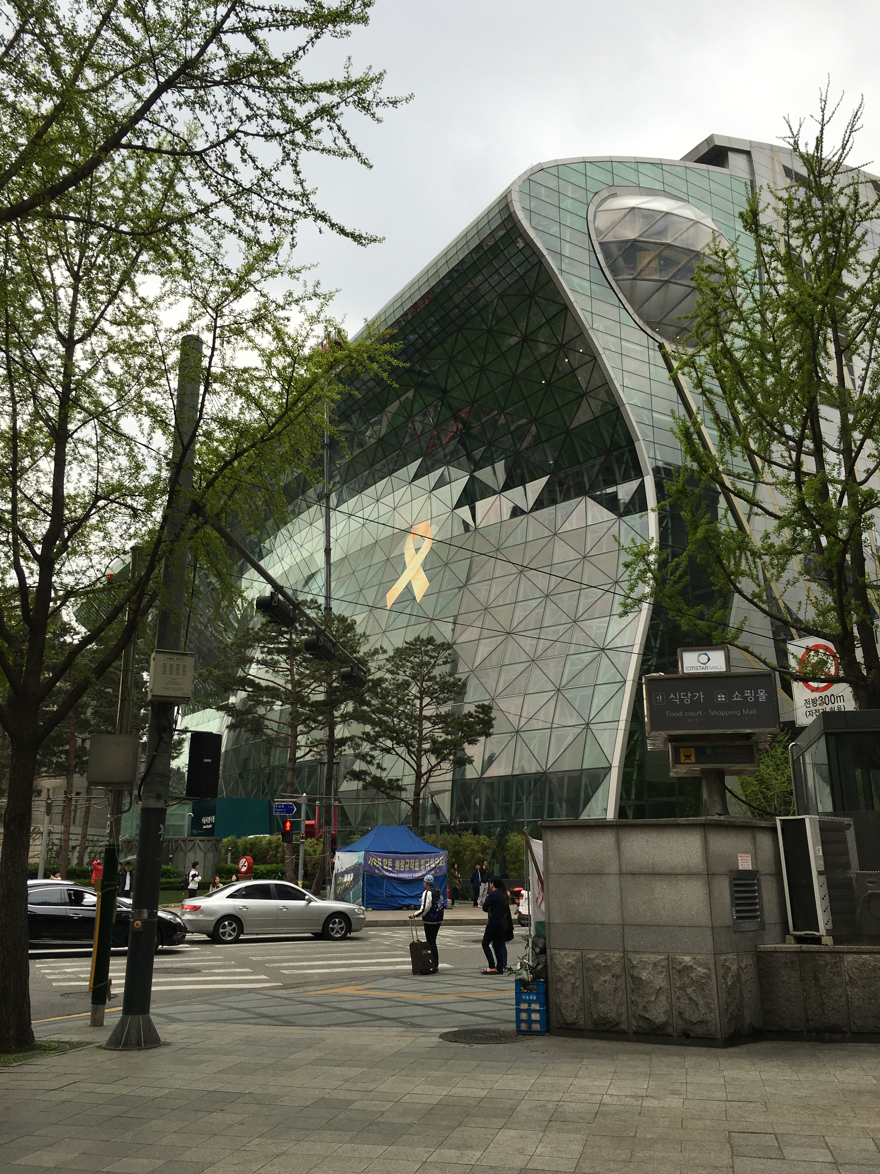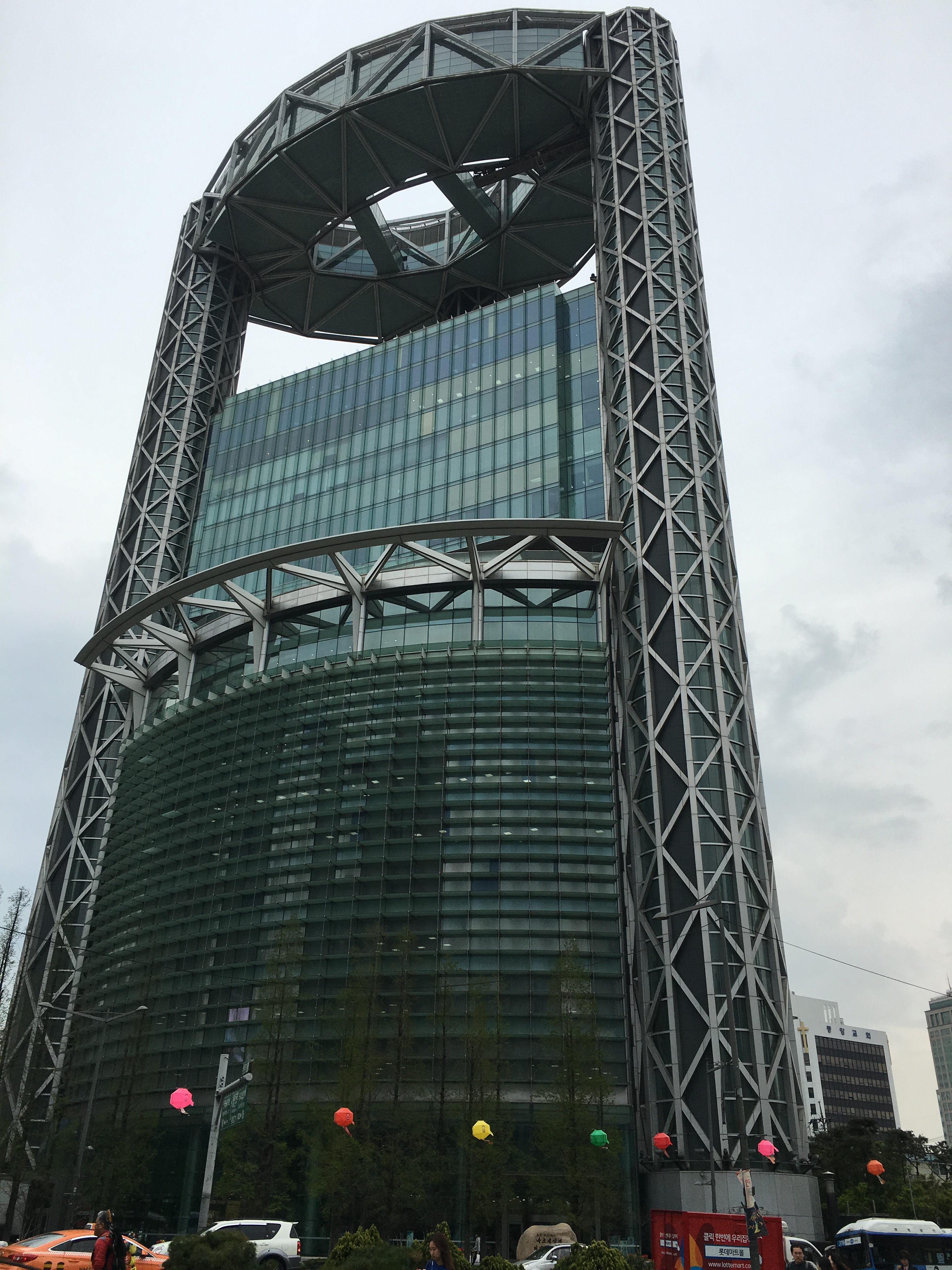 During the Joseon Dynasty, the bell was used to keep time. There are four gates in Seoul that allowed people in and out of the city. At 4:00am the bell would ring 33 times and the gates would be opened. at 10:00pm, the bell would ring 28 times and the gates would close. Now there is a bell ringing ceremony every day, but it’s best known for the special ceremony on New Years Eve, when the bell is rung 33 times to welcome the new year. We finally made it to the new City Hall building that just happens to be built right behind the old City Hall Building (which is now the Seoul Metropolitan Library – you can tour that too.). It really is a great contrast between new and old. The new building is 18 stories high….13 above ground and 5 below ground.