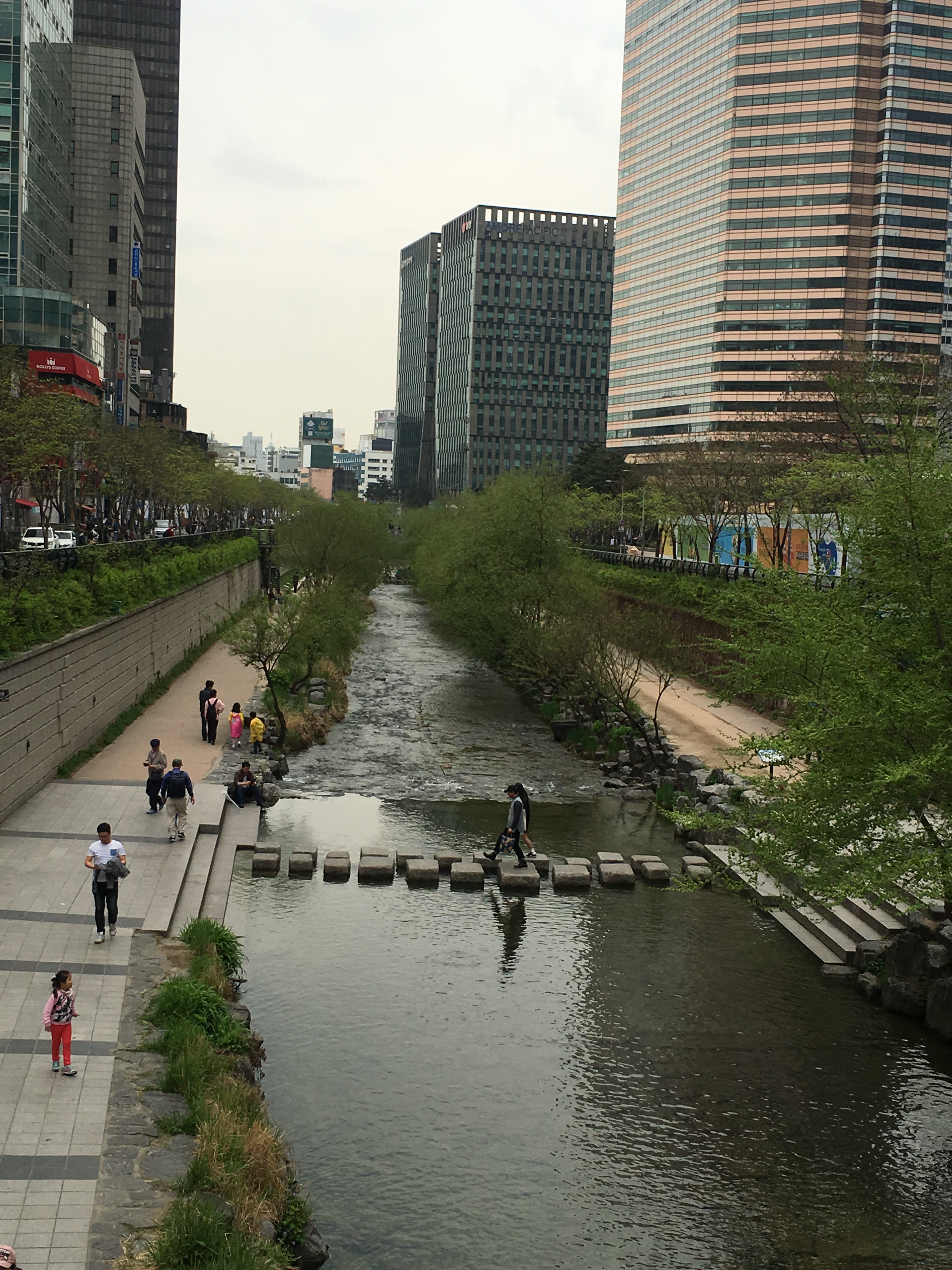 On the way we crossed over the Cheonggyecheon Stream. In 2005, the stream underwent a transformation from being a hidden waterway to a place where you can walk the banks on a leisurely stroll.