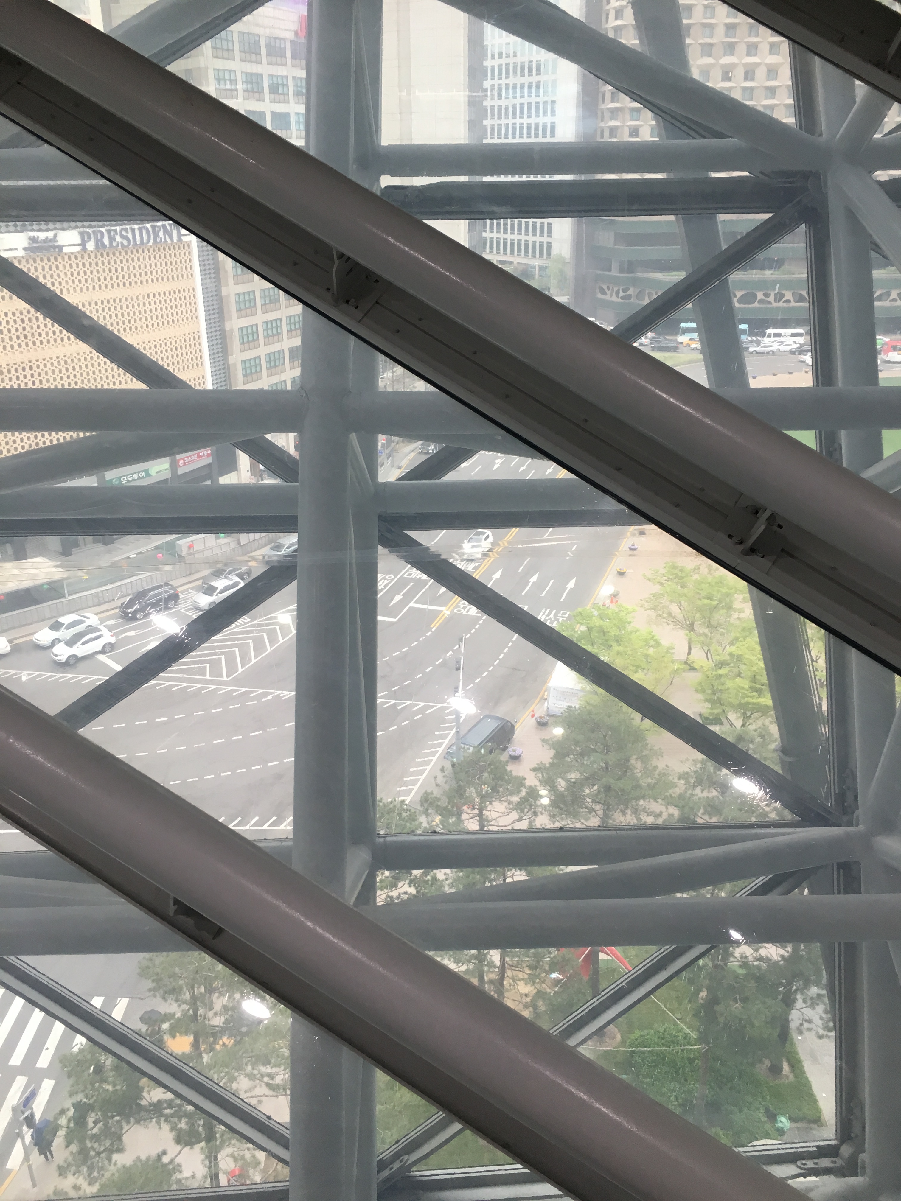 There is a coffee shop on the 9th Floor (Sky Plaza), where there are great views of the city, but it was closed the day we were there. But you can go up to the deck below that – to the 8th Floor (Sky Plaza gallery) and get some views of the city and take in the current art exhibit.