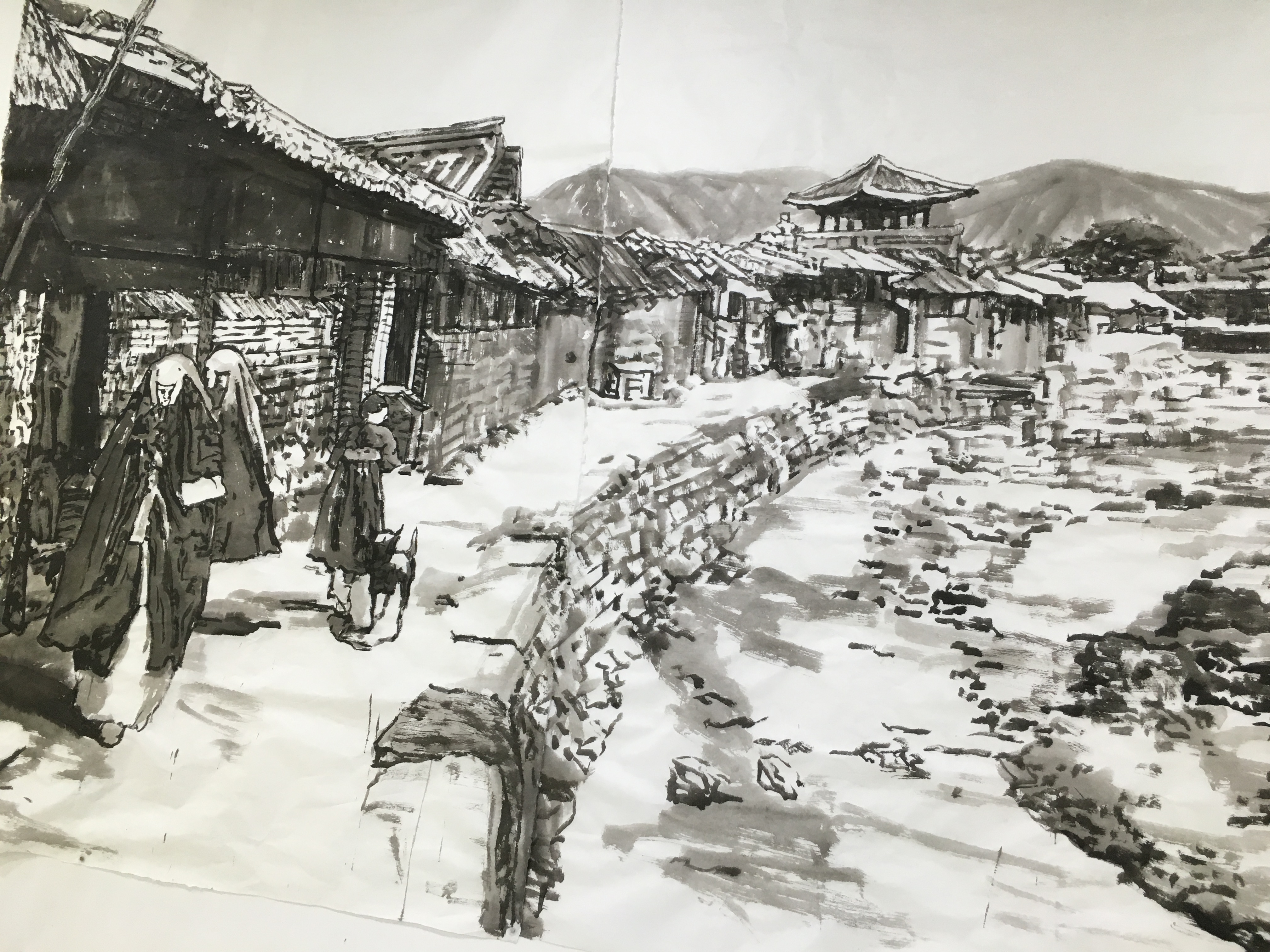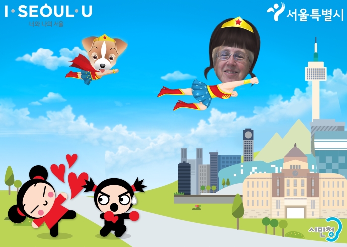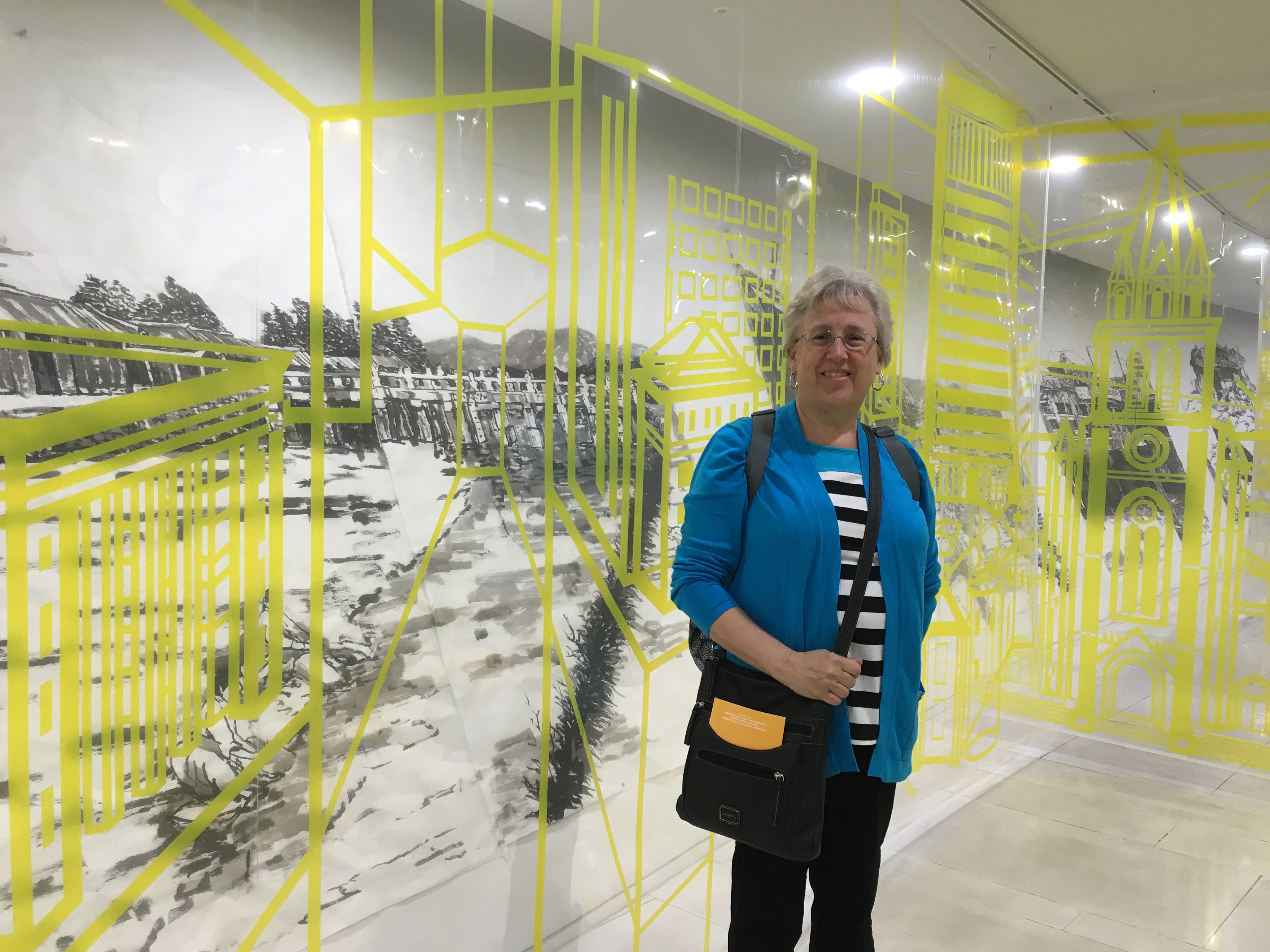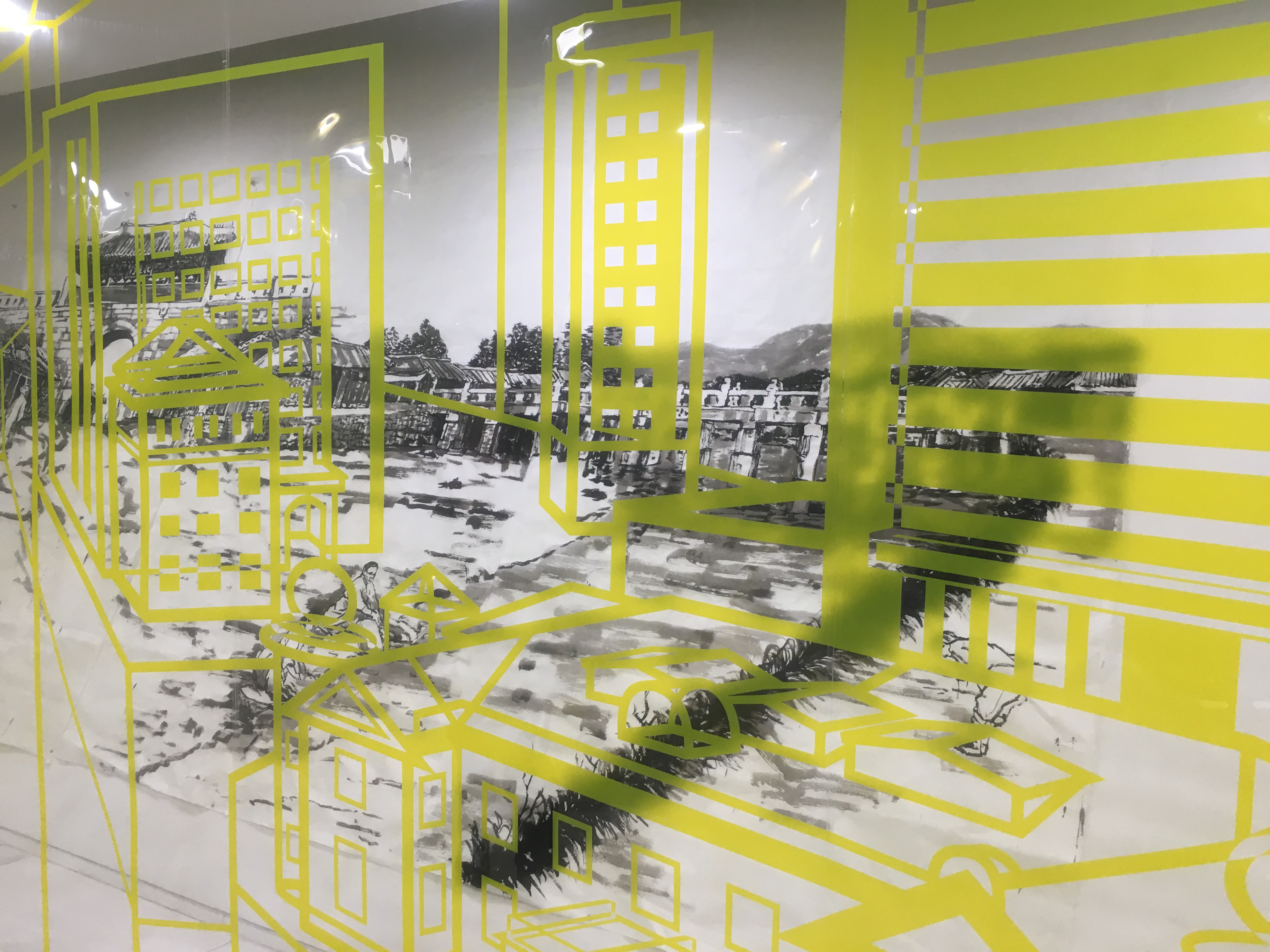 The display for 2016 is by the artist, In-Sung Jong, called Wind+Want in Seoul. It was really interesting…it juxtaposed black and white views of the city in the past with outlines of Seoul in the present and future in yellow outlines.