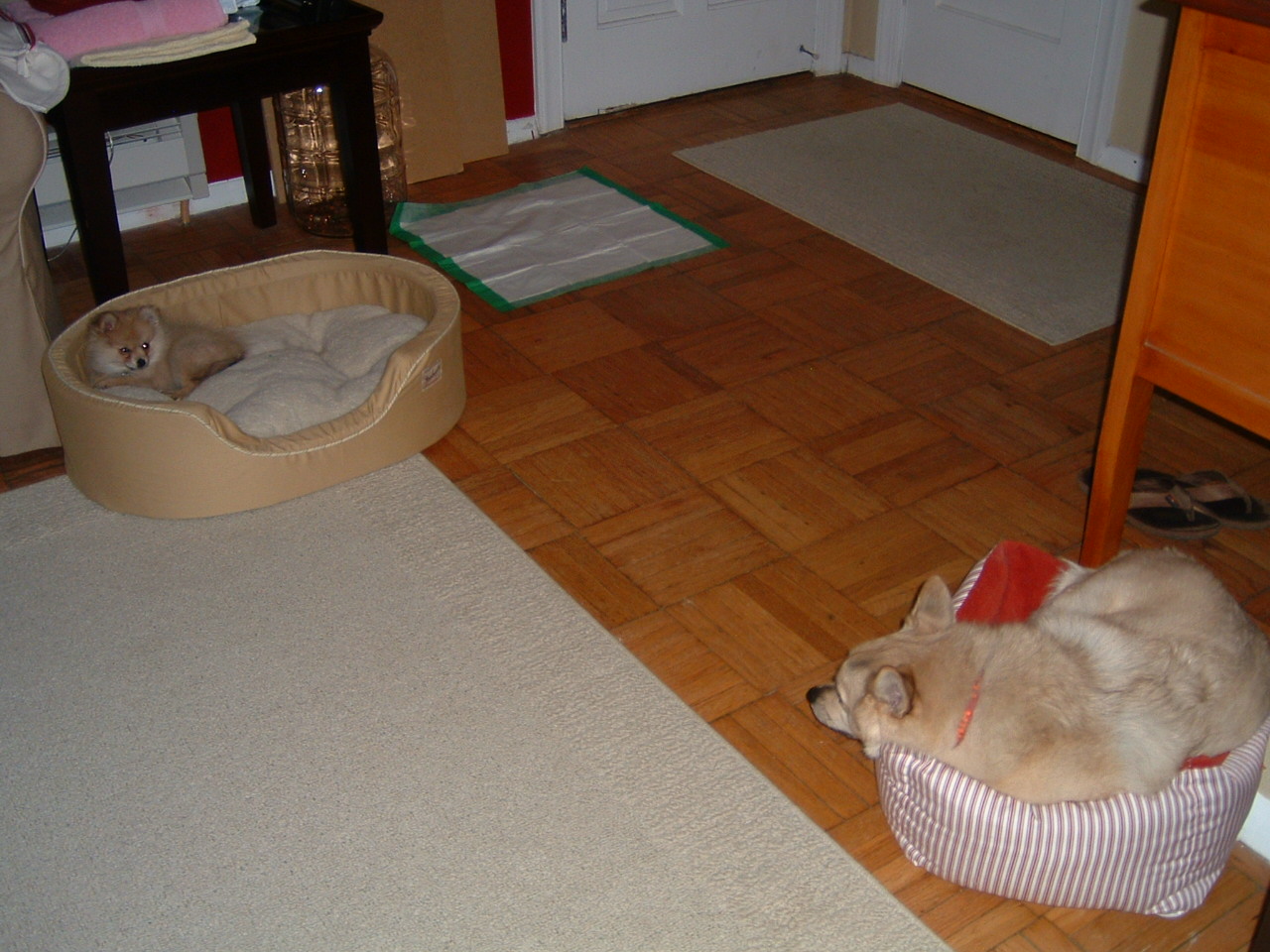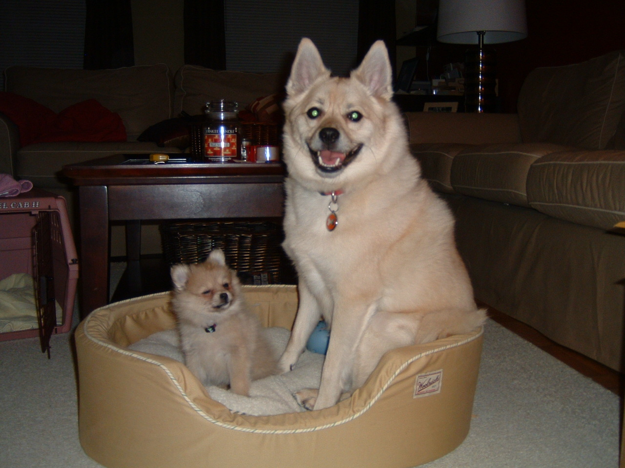 When she was first brought home, she also had a big brother, Brodie. (That’s the “what are you doing in my bed” look).